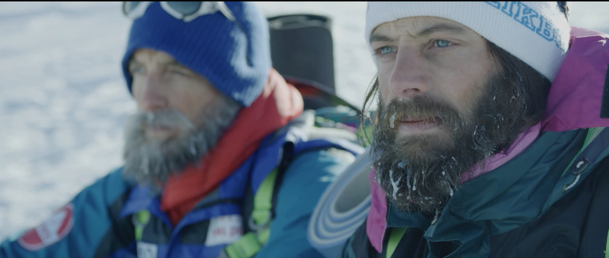 Szene_Die Tragödie am Manaslu 1991_Friedl Mutschlechner (Dominik Maringer) und Hans Kammerlander (Michael Kuglitsch) Bestürzung über Tod ihres Freundes Karl Großrubatscher (c)Planet Watch_Thimfilm