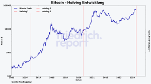 Das Halving ist ein entscheidender Wendepunkt und wichtiger nächster Evolutionsschritt auf dem Weg zu einem transparenten und unabhängigen Geldsystem. Historisch gesehen hat es einen enormen Einfluss auf den Bitcoin-Preis, da es das Angebot verknappen und das Interesse wecken kann. Viele betrachten das Halving als ein bullishes Signal für Bitcoin, das eine Phase verstärkten Interesses und Preissteigerungen einleiten könnte. Dabei ist allerdings auch zu beachten, dass sich mittlerweile weitere Spieler am Tisch befinden, welche vorher noch nicht investiert waren und diese Gelegenheit ebenso für sich nutzen wollen.