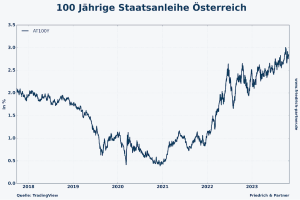 Daher stellt sich berechtigterweise die Frage, wieso Deutschland nicht ähnlich gehandelt hat wie Österreich. 16 Prozent der österreichischen Schulden haben eine Fälligkeit von 25 Jahren oder mehr. 8 Prozent sogar eine Fälligkeit von mehr als 30 Jahren. Ein genialer Schachzug war allerdings, als unsere Nachbarn im Jahr 2017 eine 100-jährige Anleihe emittierten (siehe Abbildung). Der Zinskupon lag damals bei 2,1 Prozent. Zwei Jahre später hat man sogar noch einmal aufgestockt. Die Emissionsrendite belief sich zu diesem Zeitpunkt auf 1,17 Prozent. Ein genialer Schachzug der Österreicher. Der österreichische Finanzminister sollte dafür eigentlich das Bundesverdienstkreuz erhalten.