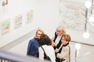 Im Anschluss an den furiosen, umjubelten Auftritt führte der Wertheimer Kunsthistoriker Marc Peschke in die Ausstellung ein – auch durch ein Gespräch mit der Künstlerin: eine Art Atelier-Dialog, um sich so ganz behutsam der Kunst zu nähern.