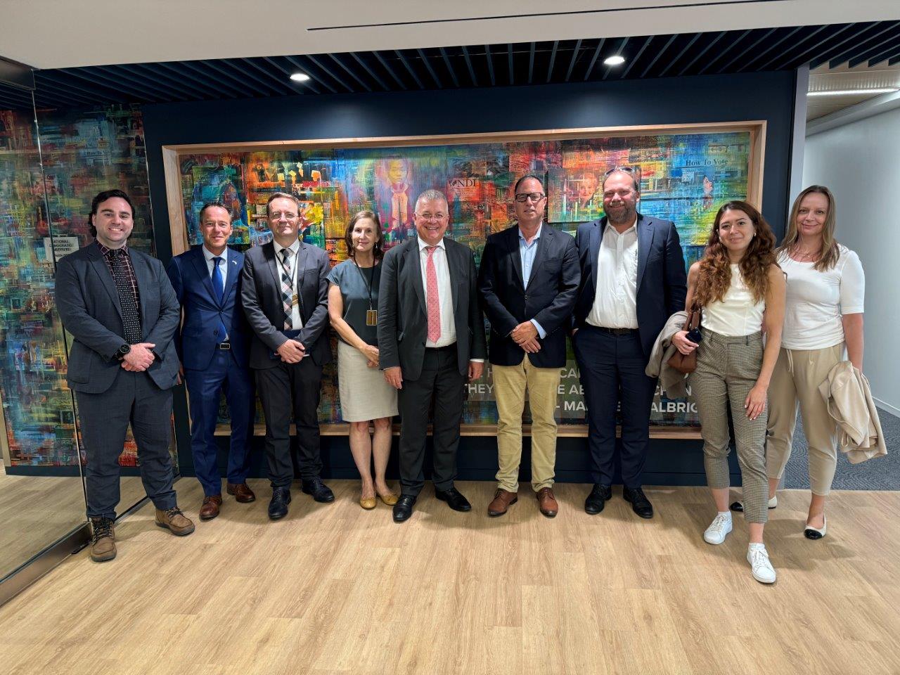 Markus Ferber, MdEP, beim National Democratic Institute mit Slobodan Milic, Parteiexperte (3.v.l.), Stephanie Rust, Programmleiterin Democracy (4.v.l.) und Robert Benjamin, Direktor, Mittel- und Osteuropa (4.v.r.). Foto: © HSS