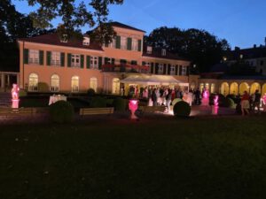 Der Sommerempfang war durch die Corona-Pandemie die letzten zwei Jahre ausgefallen. Nach dem Festakt bot der Garten des Schlosses Suresnes, auch Werneckschlößl genannt, eine festlich illuminierte Kulisse.