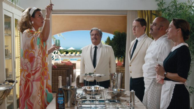Baronin Éliane Tranchant (Virginie Hocq) gibt dem Personal, Küchenchef Cyril (Jérôme Commandeur) und dem verdeckt ermittelnden Inspektor Boulin (Christian Clavier) Anweisungen.
