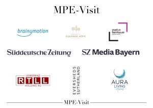 Kooperationspartner der inspirierenden MPE-Veranstaltung im Januar 2025 sind die Süddeutsche Zeitung GmbH und SZ Media Bayern, so auch Eversheds Sutherland (Germany), RTLL Lewerenz Holding AG, das Parkhotel Egerner Höfe, die brainymotion AG, das Aura Living Hotel in Rimini/Italien und die Künstlerin Evelyn Bermayer.