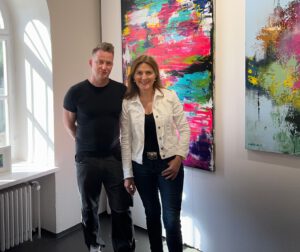 Monika Freifrau von Pölnitz von und zu Egloffstein (MPE) besuchte mit ihrem exklusiven Kunst- und Kultur-Netzwerk am 12. Mai 2022 – schon einen Tag vor dem offiziellen Beginn – Raiko Schwalbe und die großartige Kunstmesse ARTMUC in München.