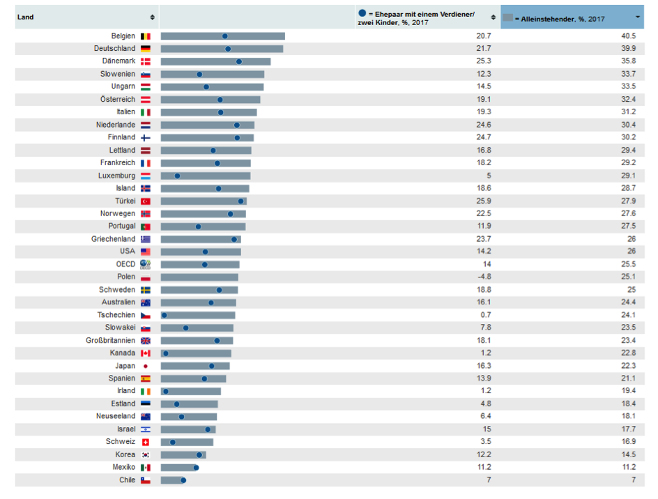 In der EU gibt es die gleiche Gurkenlänge, die gleichen Glühlampen, das gleiche Geld – zumindest in der Eurozone – aber nicht dieselben Steuersätze! Warum musste 2017 eine deutsche Familie mit zwei Kindern und einem Verdiener im Schnitt 21,7 Prozent Steuern bezahlen und eine irische Familie nur 1,2 Prozent und eine polnische sogar -4,8 Prozent? Wie viel würde Deutschland eigentlich als größter Nettozahler an die EU überweisen, wenn wir in Deutschland irische Steuersätze hätten? Warum fließt deutsches Steuerzahlergeld nach Polen, Griechenland, Portugal, Italien… wo die Bürger in diesen Ländern doch viel weniger Steuern bezahlen müssen? Warum fließt das Geld nicht erst, wenn jeder EU-Bürger den gleichen Steuersatz bezahlt? Unserer Politiker fordern von uns Bürgern immer Solidarität für Europa. Solange aber keine einheitlichen Steuersätze in ganz Europa herrschen und manche Bürger Europas viel weniger Steuern bezahlen und trotzdem alle Vorzüge der EU genießen, ist diese Forderung äußerst heuchlerisch. Warum fordert kein Politiker in Deutschland irische Steuersätze? Warum will Emmanuel Macron in Frankreich die Einkommensteuer deutlich senken und Angela Merkel in Deutschland nicht? Schon jetzt haben wir in Deutschland mit Belgien zusammen die höchste Abgaben- und Steuerlast weltweit!