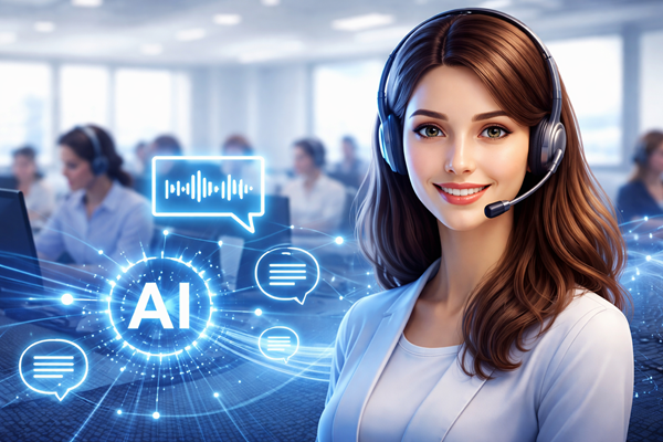 Freundliche KI im modernen Callcenter, KI generiert Freundliche KI im modernen Callcenter, KI generiert Drucken