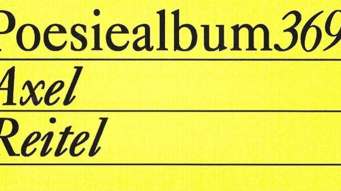 Quelle: Alioth, Gabrielle. „Buchbesprechung | Poesiealbum 369 von Axel Reitel.“ Glossen. 30 Juli 2025. https://blogs.dickinson.edu/glossen/2025/07/30/buchbesprechung-poesiealbum-369-von-axel-reitel/