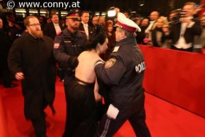 Die ukrainische Aktionskünstlerin Alisa Vinogradova wurde am Red Carpet des Wiener Opernballs von 10 Polizisten umkreist. Der österreichische Polizeiapparat führte damit im Februar in voller Öffentlichkeit vor, wie mit Kritikern umgegangen werden soll. Die Polizisten gingen hemmungslos vor, obwohl mehrere Fotografen und Kamerateams anwesend waren.