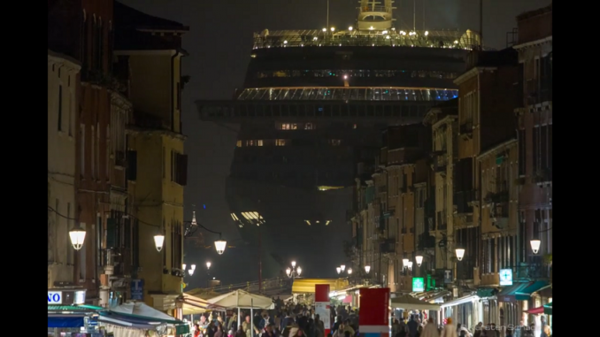 Riesiges Kreuzfahrtschiff in Venedig, gesehen von der Via Garibaldi