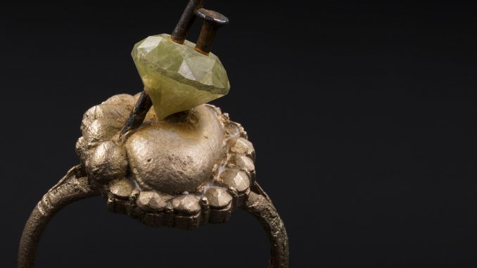 Er durchbohrt Diamanten und fixiert sie mit zwei rostigen Nägeln auf einem Goldring. Er versenkt Saphire, Rubine und Smaragde in billigem Alu. Auf einem Ring aus Weißgold mit edlen Steinen steht „Nudelsuppe“ geschrieben. |