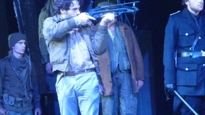Gerade die kleine, aufheiternd angelegte Partie des Waltherle Tell zeigte, wie wenig ausschließlich Stückl sich in die dominante Schiller-Thematik des Widerstandkampfs, Tyrannenmords und Heroismus verbissen hat. Nichtsdestotrotz erlebt der Zuschauer drei Stunden einen textlich gekonnt gekürzten, aufrüttelnden Thriller mit mehreren Höhepunkten: dem „Rütlischwur“ der sich gegen die Vormacht der lächerlich grausamen Habsburger tatenlüstern stellenden Kantone Uri, Schwyz und Unterwalden, der Tragik der menschenverachtenden und familienzerstörerischen Apfelschuss-Forderung des eiskalten, selbstherrlichen Landvogts Gessler: „Schieß – oder stirb!“ (herausragend-satanisch: Andreas Richter) und mindestens noch der Auseinandersetzung des beim 59-jährigen Regisseur überraschend jungen, ungemein sympathischen, glaubhaften Tell (mit erst 22 wohl der jüngste der Theatergeschichte: Rochus Rückel, dem man den Schiss vor dem Schuss und seinen Freiheitsdrang glaubt) mit dem Kaisermörder (Abdullah Karaca), der noch einmal alles Wellengebräu aus Hass, Vergeltung, Aufstand, Rache, Mord und Heldentum heraufbeschwörenden Schluss-Szene.