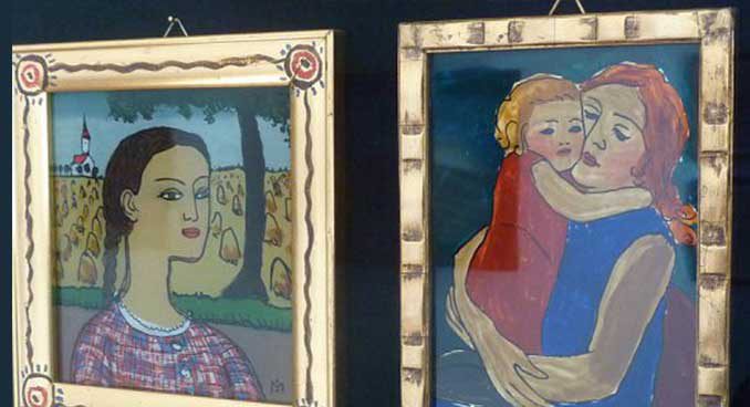 Postkartenformat haben die vier Bildchen, auf die Isabelle Jansen bei ihrer Führung durch das „Russenhaus“ in Murnau, von 1909 bis 1914 Wohnsitz von Gabriele Münter und ihrem Geliebten Wassily Kandinsky, nachdrücklich hinweist. Als Chefin der in München ansässigen „Gabriele Münter- und Johannes Eichner-Stiftung“ wählte Jansen den Schwerpunkt „Primitivismus“ für ihre neu konzipierte Ausstellung – ganz gezielt als Einstimmung auf die ab November 2017 im Münchner Lenbachhaus gezeigte große Schau, die sich auf die Suche nach den Wurzeln der Kreativität der Malerin Gabriele Münter (1877 bis 1962) begibt.