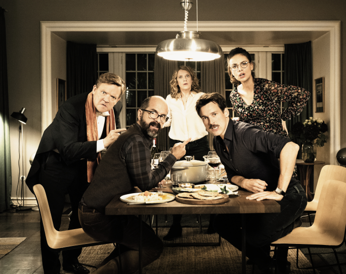 Ein Abendessen läuft aus dem Ruder: René (Justus von Dohnányi), Stephan (Christoph Maria Herbst), Elisabeth (Caroline Peters), Thomas (Florian David Fitz) und Anna (Janina Uhse)