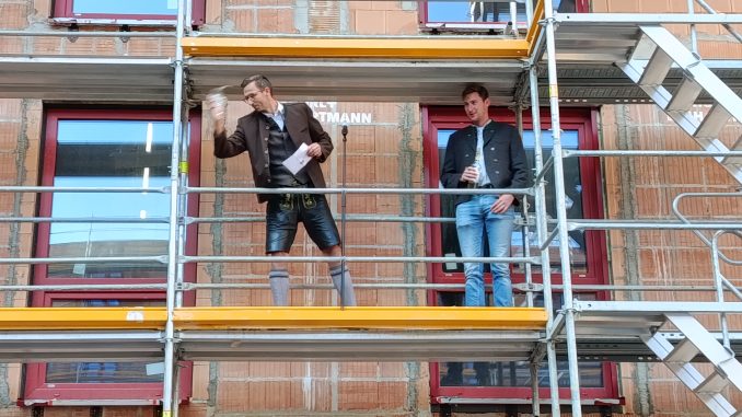Ministerpräsident Dr. Markus Söder beim Richtfest der Stadibau in München.