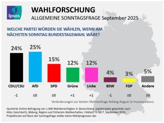 Im aktuellen Sonntagstrend von Ipsos bleibt die AfD mit unveränderten 25 Prozent stärkste Kraft […]