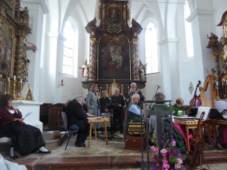 Der Blick, auf den Hochaltarraum gerichtet, bleibt dort hängen: Ein Schwarm weißer Papiertauben schwebt in kühner Bogen-Formation an dem Pfingst-Altargemälde mit der Heilig-Geist-Taube vorbei, die von links oben auf Christi Mutter mit den Aposteln herab flattert. […]