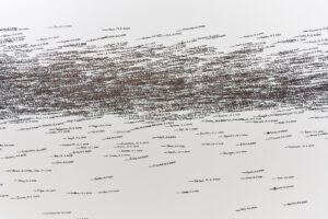 Erstmals nach 15 Jahren ist eine Performance des Künstlers Roman Ondak (*1966) wieder zu erleben, die speziell für die Pinakothek der Moderne entstanden ist. Das Konzept von „Measuring the Universe“ („Das Universum vermessen“) ist einfach: Die Körpergröße der Museumsbesucherinnen und -besucher wird auf der Wand festgehalten – in der Art, wie Eltern das Wachstum ihrer Kinder markieren, um ihnen ein Gefühl für die Dimension der Zeit zu vermitteln. Eine alltägliche, eigentlich private Handlung rückt ins Zentrum der Aufmerksamkeit und verwandelt sich in eine öffentliche und kollektive Aktion. Im Ausstellungszeitraum entsteht eine Zeichnung an der Wand, die immer dichter und schwärzer wird. Am Ende werden alle Menschen gleichzeitig präsent sein, obwohl sie auch alle wieder gegangen sind.