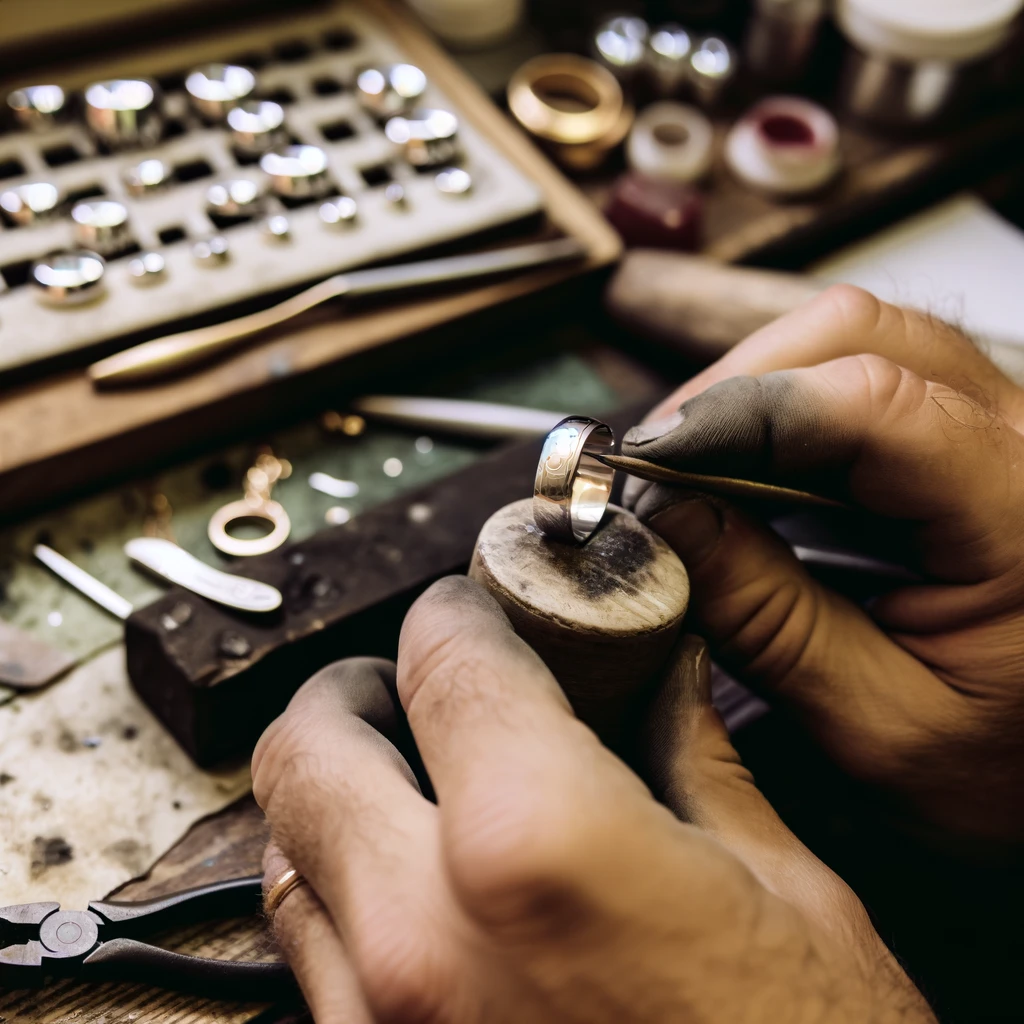 Ein Kunsthandwerker, der sorgfältig einen einzigartigen Ehering in seiner Werkstatt herstellt, was den Wert und die Bedeutung von maßgeschneiderten Ringen unterstreicht. Pixabay License Freie kommerzielle Nutzung Kein Bildnachweis nötig