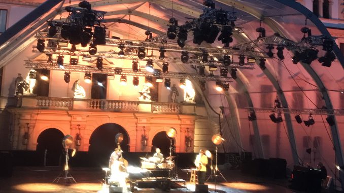 Benediktiner Kräuterlikör erleben. Und das Lebensgefühl einer New Yorker Bar mit deren rauchigen Aromen verflüchtigt sich inmitten bayerischer Schlossmauern zu einem Hausgetränk voller naturnaher Ingredienzen. „Deep under the ocean- Tief unter dem Ozean“ verbreitet in der Nähe des berühmten Donaustrudels unter der Steinernen Brücke sicher eine andere Wirkung als wenn man diesen wiederkehrenden Refrain auf einer Kreuzfahrt erlebt. Und so bleibt die Wirkung all dieser Lieder, innig und emotional berührend vorgetragen und inszeniert, als Mahnwache an den heiligen Wänden kleben. Alle Fenster des Schlosses sind geschlossen. Kein Licht – mit Ausnahme der Beleuchtung der Bühne – soll die Konzentration nehmen von Diana und ihren Weltklasse-Jazzmusikern Saxophonist Joe Lovano, Bassist Robert Hurst und Drummer Karriem Riggins, die hingebungsvoll die Love Songs, last not least in memoriam Frank Sinatras, interpretieren. Und so lässt sich das einzige Deutschland-Konzert der weltweit berühmten Jazz Pianistin mit dem unverwechselbaren Timbre ihrer Stimme für die eingeweihten Fans als Exzellenz – Programm hautnah und intensiv genießen. Die Liebe wird in allen Variationen beschworen; und die Sehnsucht nach „under the skin“ mit dem melancholischen Unterton bleibt in allen anderen Melodien omnispräsent. Kein zugiger Lufthauch trübt das Gefühl, dabei zu sein. Ein Sommerabend wie gemalt von Wilhelm Kaulbach oder Anselm Feuerbach, ohne Platzregen, ohne Gewitter, mit einigen hundert gut gelaunten Gästen, die den harten Sitzplatz vergessen lassen, wenn man den Blick über das Publikum, zum Teil in eleganter Abendgarderobe, zum Teil in Jeans mit witzigen Oberteilen, wirft. Fast ausverkauft. Die Schlossfestspiele haben ihr Stamm-Publikum – nicht ohne Grund. Nach arbeitsreichen Aktiv-Wochen vor dem PC, bei Dienstbesprechungen rund um die Uhr und Reisen für die anstehenden digitalen Transformationen rund um den Globus, darf man sich vor dem Sommerurlaub noch einen festlichen Abend mit Gleichgesinnten gönnen. An den schicken BMWs – Sponsor des Abends – vorbeiziehend, kommt genußvolle Lebensfreude auf. Man kennt und schätzt sich, auch wenn nur einige wenige an der Tafel der Fürstin Platz nehmen durften. Exquisit und originell wäre es gewesen, wenn Weltstar Diana Krall einen ihrer Songs dem legendären Regensburger Bruckmandl und seinem Wettkampf mit dem Dombaumeister gewidmet hätte. Da wären die Regensburger sicher von den Sitzen gesprungen und hätten die weltberühmte Sängerin in ihr Herz geschlossen. So blieb letztendlich jeder in seiner eigenen Welt. Ohne Ansteckungsgefahr. Der Beifall für Diana Krall mit einer Zugabe war von bayerischer Herzlichkeit. Ein frenetischer Applaus sieht anders aus. Und solch ein Echo hätte nicht nur Nat King Cole wiederbeleben können. Ein Hausgetränk- Mix ohne Sprizz hat eben eine eher wohltuende Wirkung, wie es die Benediktiner an diesem ehrwürdigen Ort des Geschehens mit ihrem Leitspruch „Ora et labora“ jahrhundertelang praktiziert hatten. Selbst moderne Klangwolken und Hightech – Gerüste können im Wandel der Zeiten dem Heiligen Emmeram nicht die Stirn bieten. Fazit: Für den Grammy Wettbewerb ließe sich sicher eine bessere Location finden. Aber, Spaß beiseite, dieser Abend ist denkwürdig, zeigt er doch, welche Wogen die Stadt des Immerwährenden Reichstags noch in Bewegung setzen kann. Keine Episteme, aber geselliges Beisammensein unter dem Patronat einer Fürstin, fast wie in früheren Zeiten.