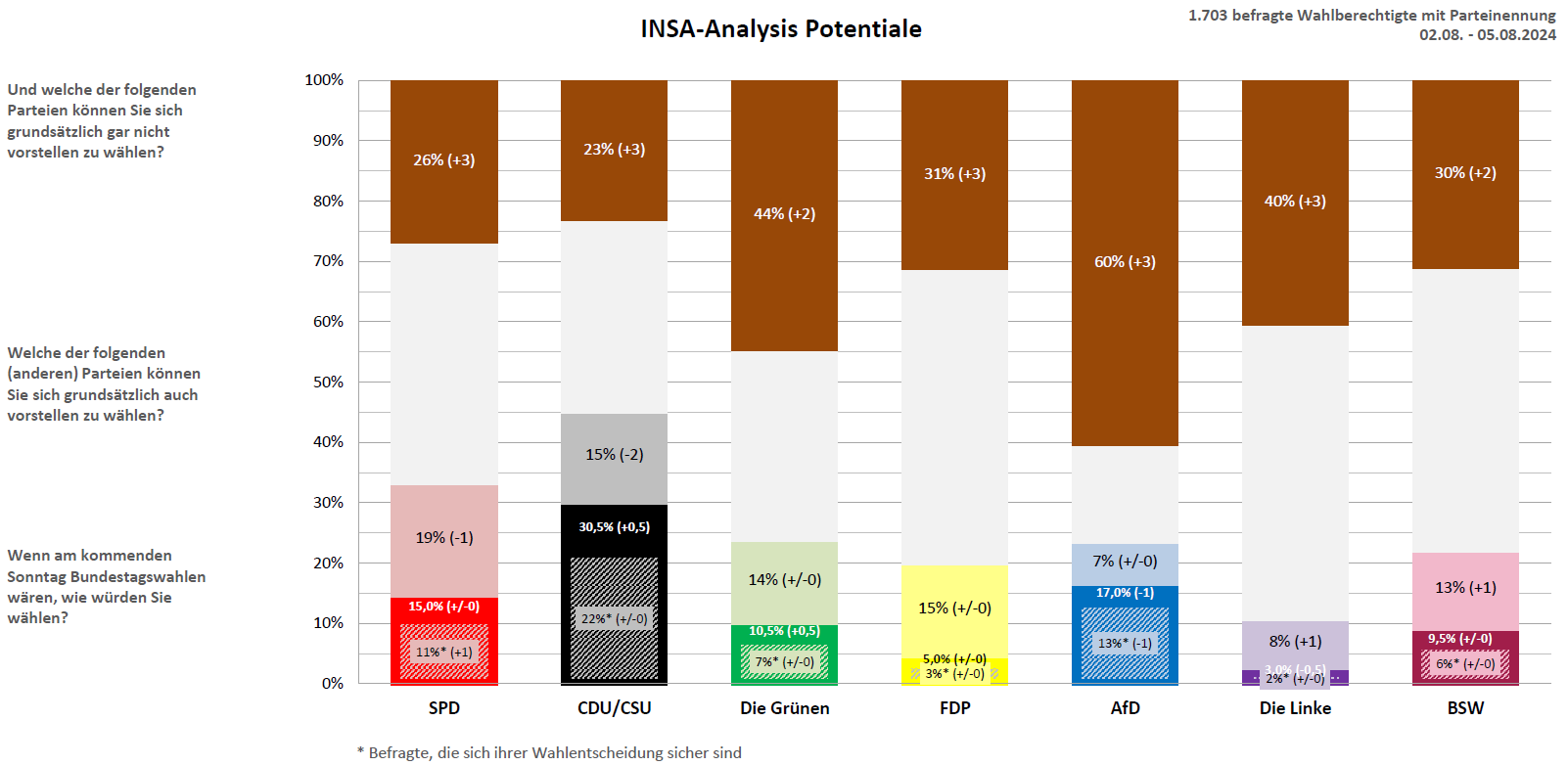 Union und Grüne leicht stärker – AfD und Linke schwächer Union und Grüne leicht stärker – AfD und Linke schwächer Drucken