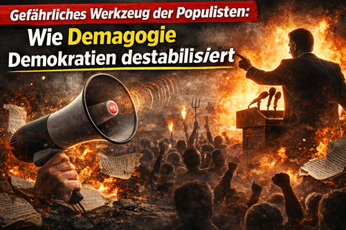 Die Gefahr der Demagogie für die Demokratie, KI generiert Die Gefahr der Demagogie für die Demokratie, KI generiert Drucken