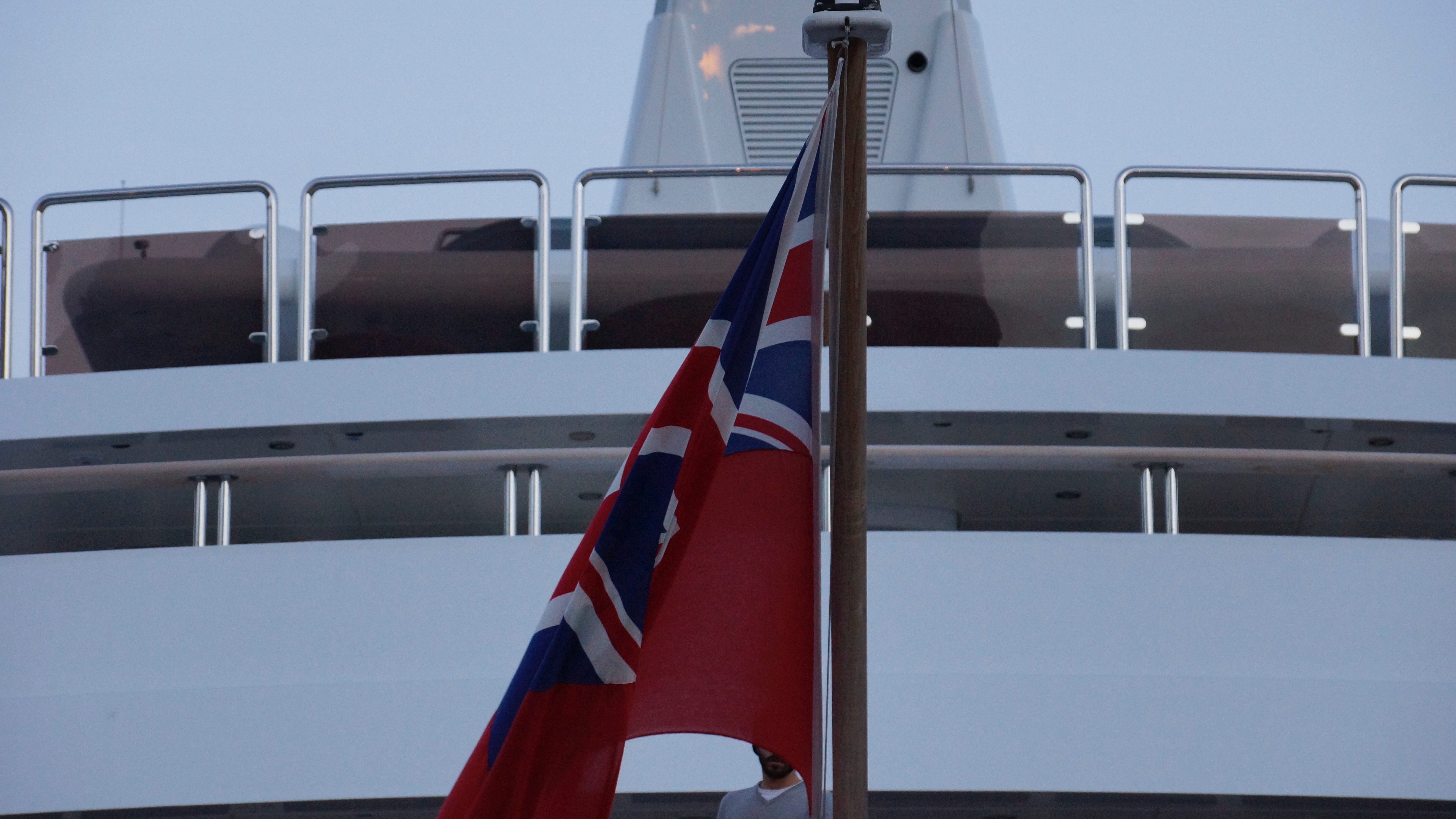 Englische Fahne vor Luxusjacht in Monaco Englische Fahne vor Luxusjacht in Monaco, Foto: Stefan Groß Drucken