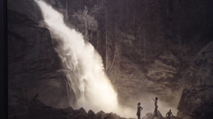 Als Olaf erstmals nicht im Atelier, sondern in freier Natur fotografierte, wählte er Wald und Gebirge Bayerns und Österreichs. Hier scheint der Niederländer sichtlich beeindruckt gewesen zu sein – von den friedlich mit der Natur lebenden Menschen nicht weniger als von Nebelfeldern, Alpenseen, Schwänen, Felsspalten, Sturzbächen, Schwänen, mit Blattwerk bedeckten Waldböden, knorrigen Bäumen. Die paar zurechtgemachten Menschen, die er als Beobachter eines Krimmler Wasserfalls zur schäumenden Gischt setzte, können Urlauber oder Einheimische sein. Oder einem Märchen Entsprungene. Olaf legte sich da nicht fest.