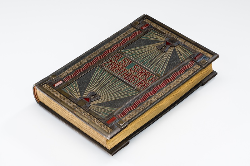 Der Jugendstil-Künstler Peter Behrens griff mit den in Leder geschnittenen Motiven den Inhalt von Nietzsches Buch „Also sprach Zarathustra“ auf. Foto: BNM.