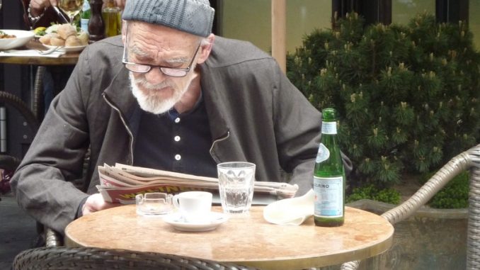 Wenn die Presseaussendung des Münchner Staatsschauspiels viele Namen bedeutender regieführender Menschen nennt, unter denen der am Vormittag des 7. November im Alter von 79 Jahren verstorbene Hans-Michael Rehberg spielte – von Ingmar Bergman bis Peter Zadek – so unterschlug sie, unter anderen, den von Christian Stückl. Der holte Rehberg an sein Münchner Volkstheater, damit er ihm half, zwei Spielzeiten lang seinen „Stall“ vollzukriegen: mit der umwerfend komischen Darstellung des pfiffigen „Verkauften Großvaters“ von Franz Xaver Kroetz. 1999 erhielt er dafür den „Gertrud Eysoldt-Ring“. Für seinen „Jedermann“ holte Stückl den damals nur greise wirkenden, jedoch erst 64-Jährigen hageren Schauspieler, geboren 1938 in der Nähe von Berlin, wo er auch starb, für die Rolle des als Langhaar-Gammler mit Plastiksäcken daherkommenden Gottes des Herrn mit Ehrfurcht gebietender Stimme. Diese wie so manche Fernseh-Figur brachte Rehberg Presse- und Publikums-Sympathien ein. Wenige Tagen vor seinem Tod stand er als Teiresias im „König Ödipus“ auf der Bühne des Residenztheaters, das schon dem 30-Jährigen die Auszeichnung Kammerschauspieler verliehen hatte. Bühnenerfolge erzielte Rehberg auch an der Wiener Burg, in Zürich, Hamburg, Stuttgart, Köln, Berlin. Er zählte zu den allergrößten seiner Zunft. Das wussten auch Theater-Akademien in Wien und München, die ihn für sein überragendes Können auszeichneten. Das Foto zeigt Rehberg mal als Genießer während einer Münchner Theaterprobenpause im April 2014. (Foto: Hans Gärtner)